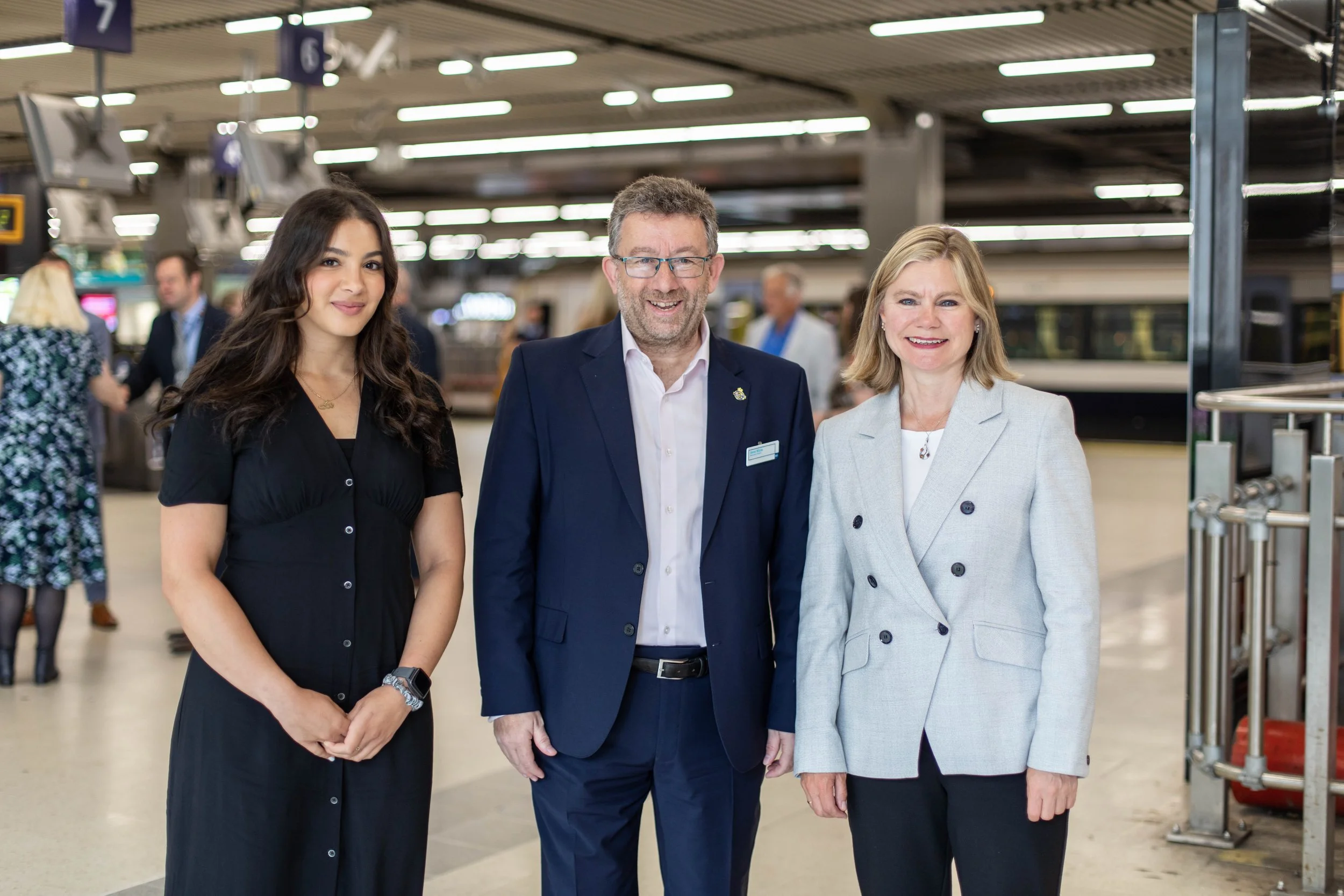 Pictured: Southeastern Technical Services Engineer, Nada Abouelhiga; Southeastern Managing Director, Steve White; Chair of the Purpose Coaliton & former Secretary of State for Transport, Rt Hon Justine Greening